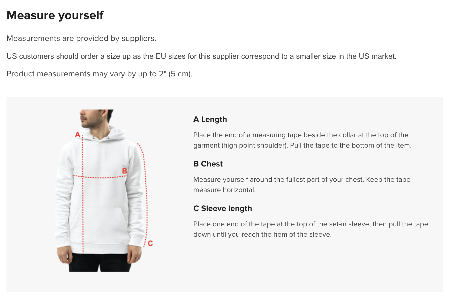 Measure yourself around the fullest part of your chest. Keep the tape measure horizontal.