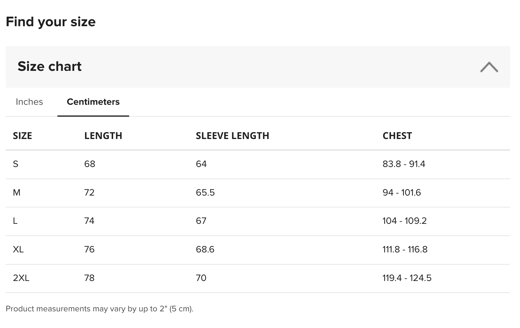 • 2XL: 119.4-124.5cm (47-49in)